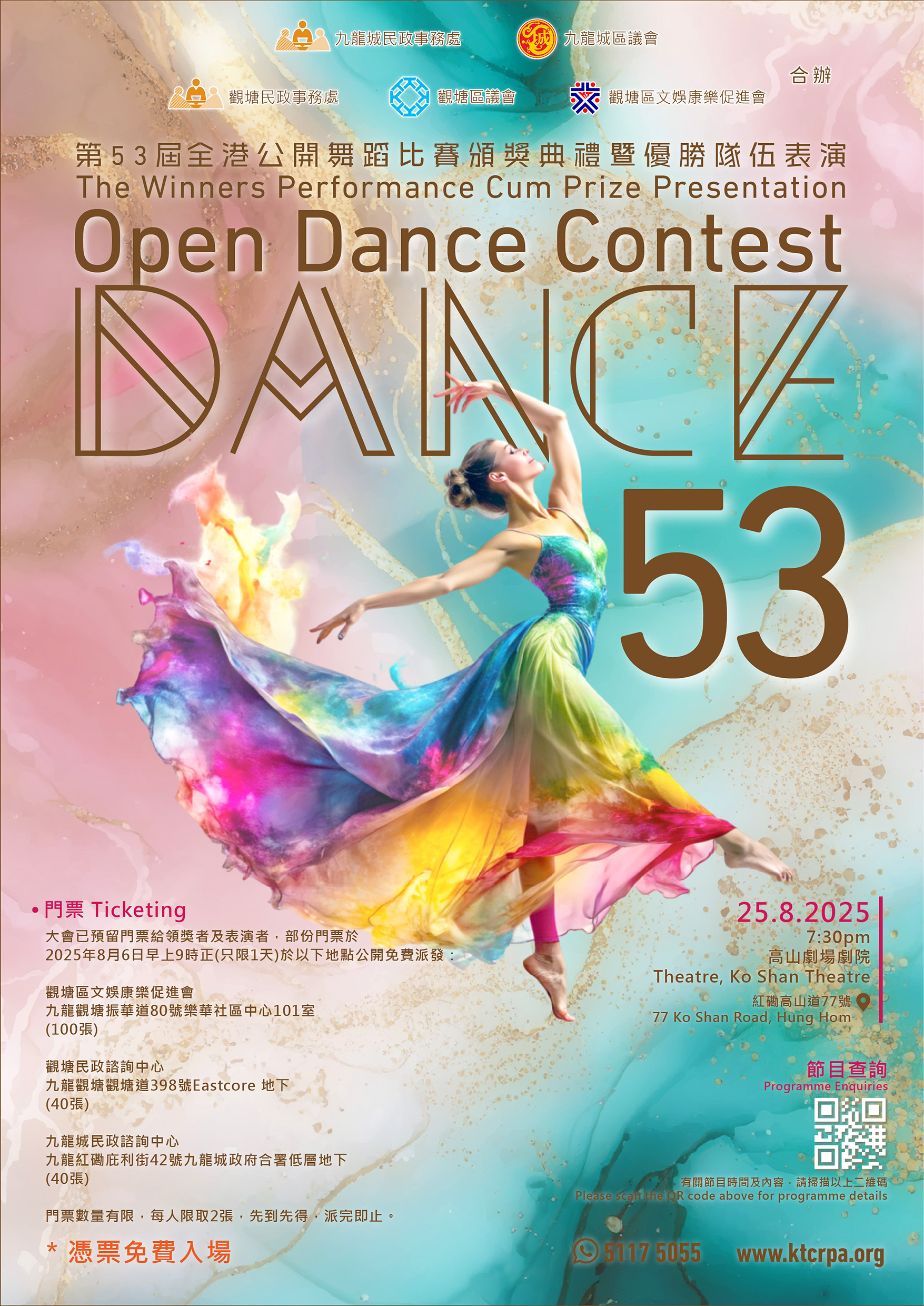 承蒙各界厚愛,「全港公開舞蹈比賽」才能有如此歷史,我們將延續過去52年傳統,讓舞者們登上這個舞台,再一次追逐夢想、實踐自我,展現最優秀的一面給觀眾。